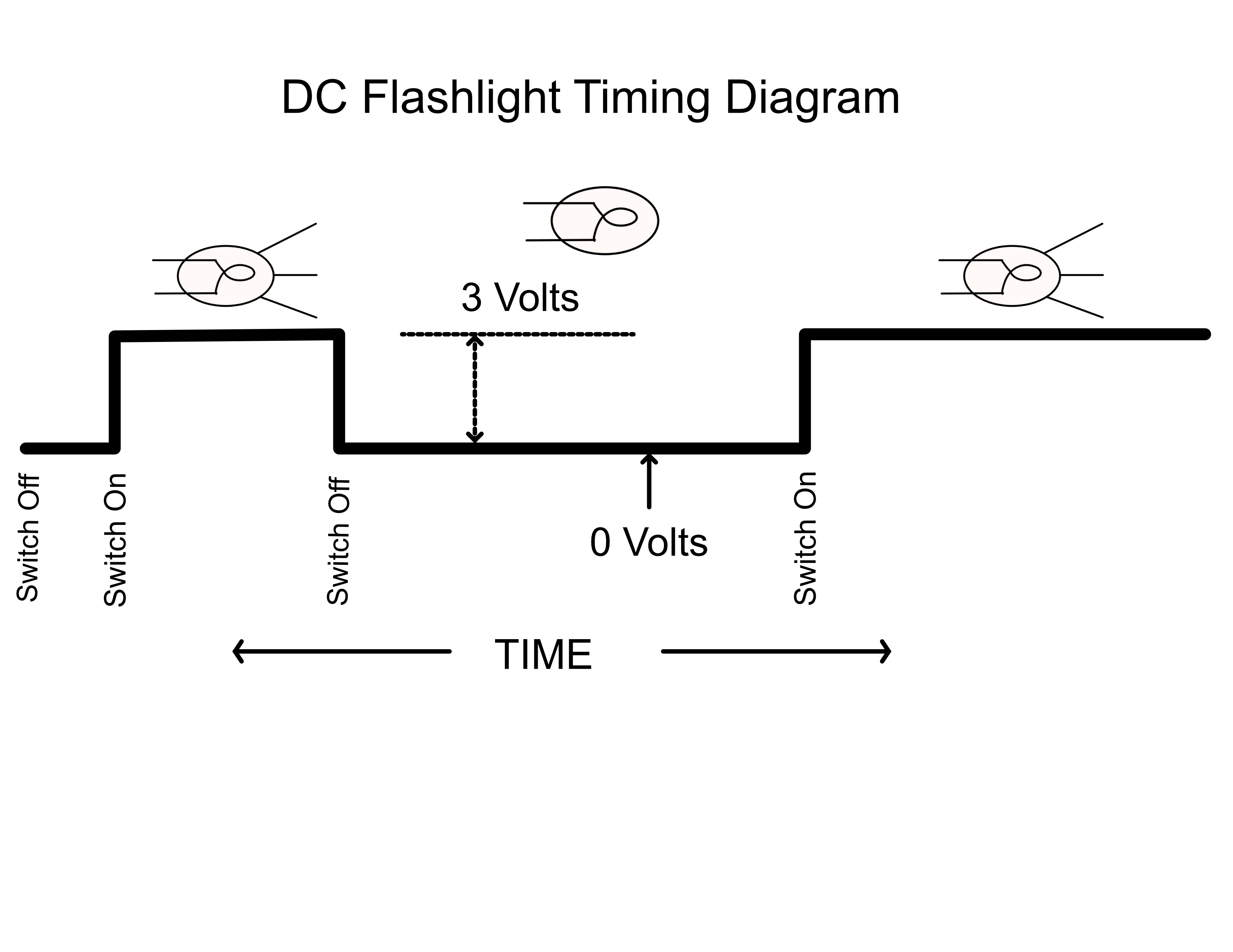 If we graph someone turning a flashlight on and off over time, this is what a DC Timing diagram would look like.