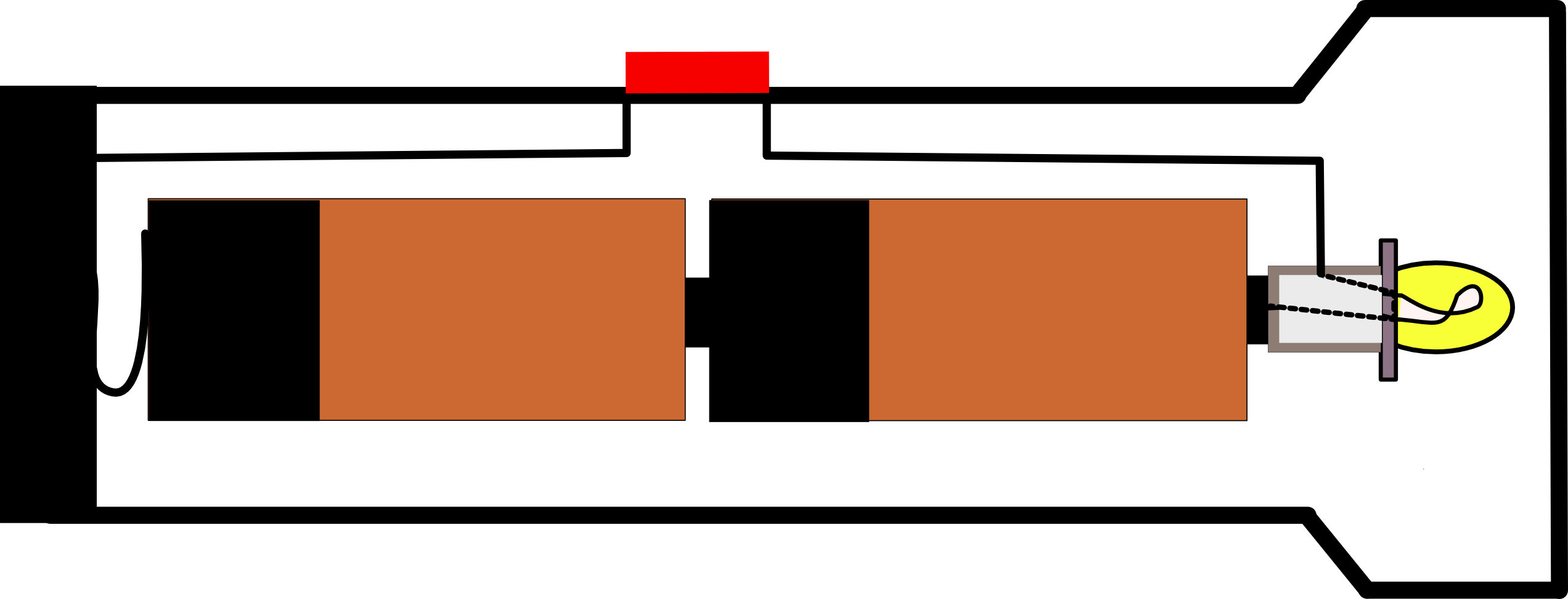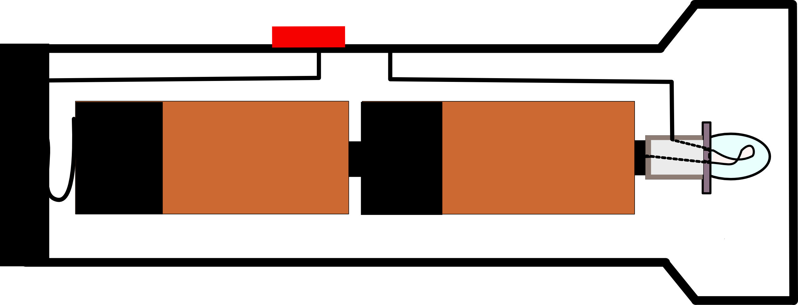 Below, we can take a peek at the insides of typical flashlight using 2 -D Batteries, an tungsten light bulb, and a switch.